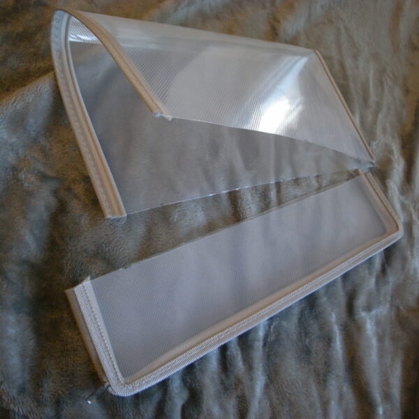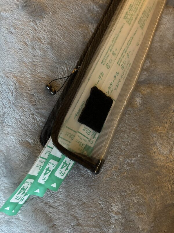 ・カテーテルホルダー作製 外出時でも なくてはならない導尿用に携帯するカテーテル 清潔に所持したいものですが こんな長細いものを入れられるホルダーは見あたら無いので ならば作ってしまえと 100円ショップの文具コーナーで見つけた書類ケースをカットしてつくりました クッション下のすきまにベルクロで固定取付 着座したままでもカテーテルだけ引きだせます