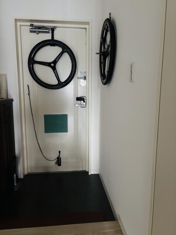 ・わたしの週間スケジュールは決まっているため 来訪時間にドアチャイムが鳴ったばあいにベッドに居ても キッチンで調理していても 手元のボタンを押すことでロック解除ができます ちゃっちゃと歩いていけない われわれ車椅子の民には 必需品かもしれません