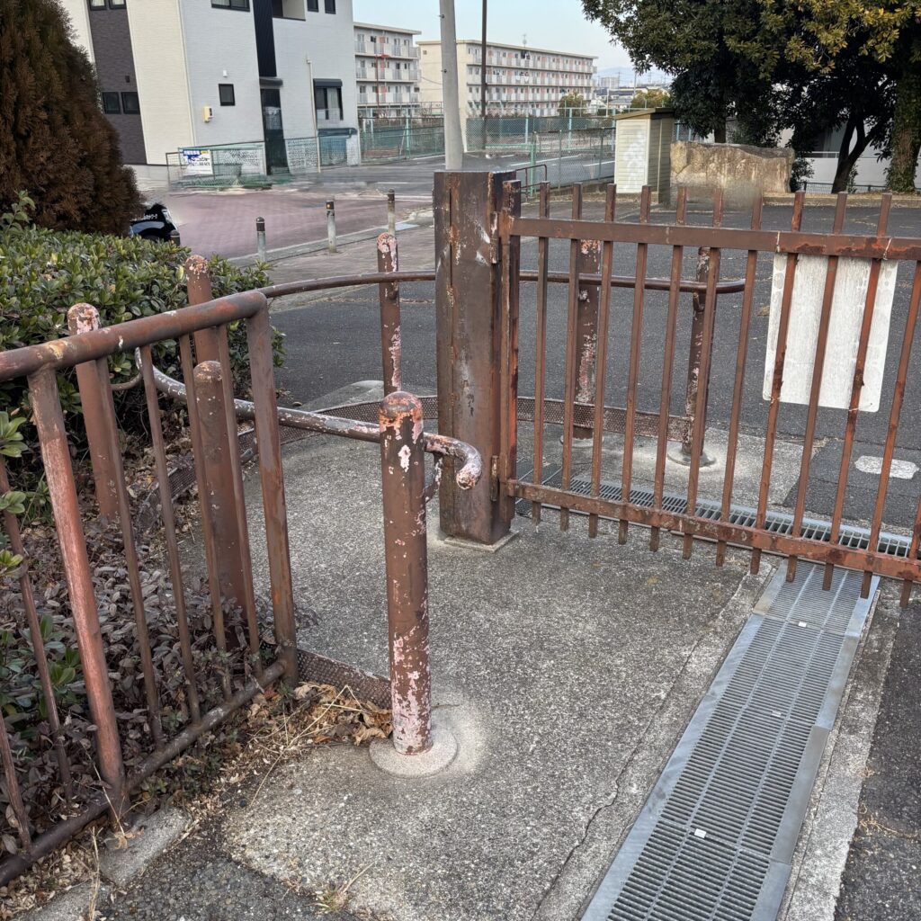 車椅子での利用は 東北角からの入口利用となります 半円形状(自転車進入防止柵)を抜けていきます 普通サイズの車椅子ならば問題なく通り抜けられるはずです その先は長いスロープが続きますので つき合いたすけてくれるお方がいらっしゃると安心かもしれません